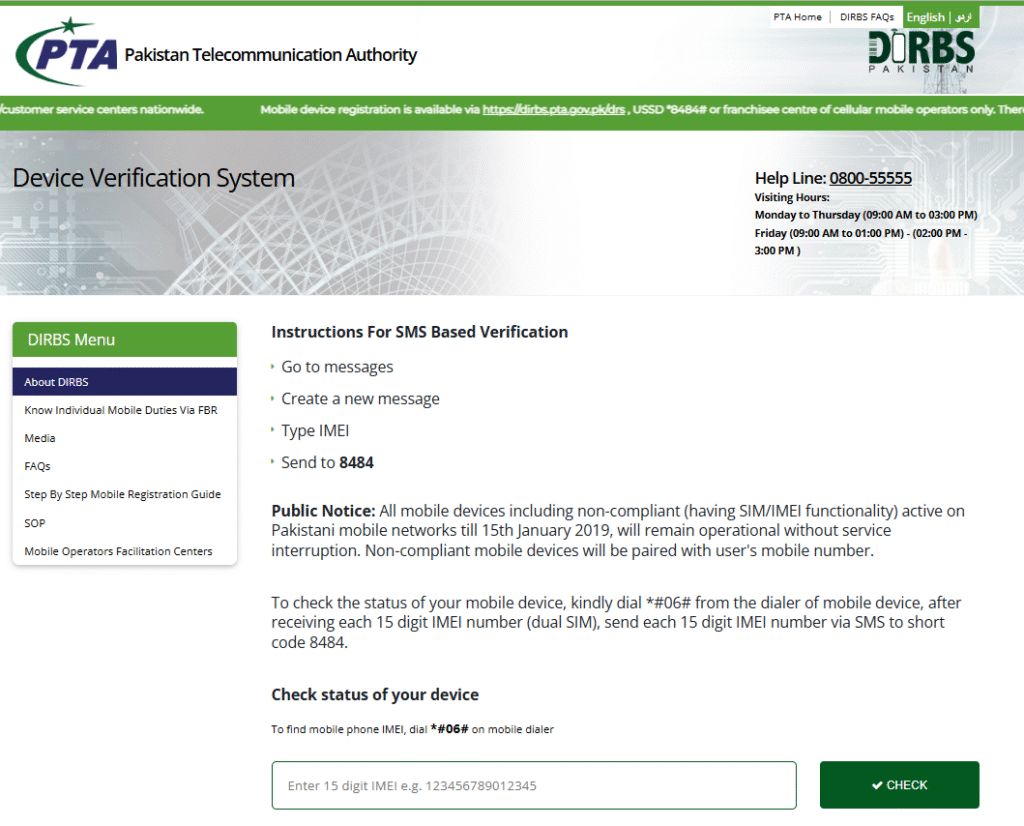 • Visit the DIRBS portal: https://dirbs.pta.gov.pk